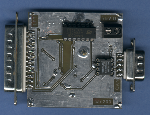 CAN200 PCBHere you can find a PCB for the CAN200-InterfaceIt is a CAN-Dongle for the printer port developed by Martin Homuth-Rosemann to be used with Linux. The Linux driver is avalible here. A windows driver written by Juergen Eder is avalible here. Pictures